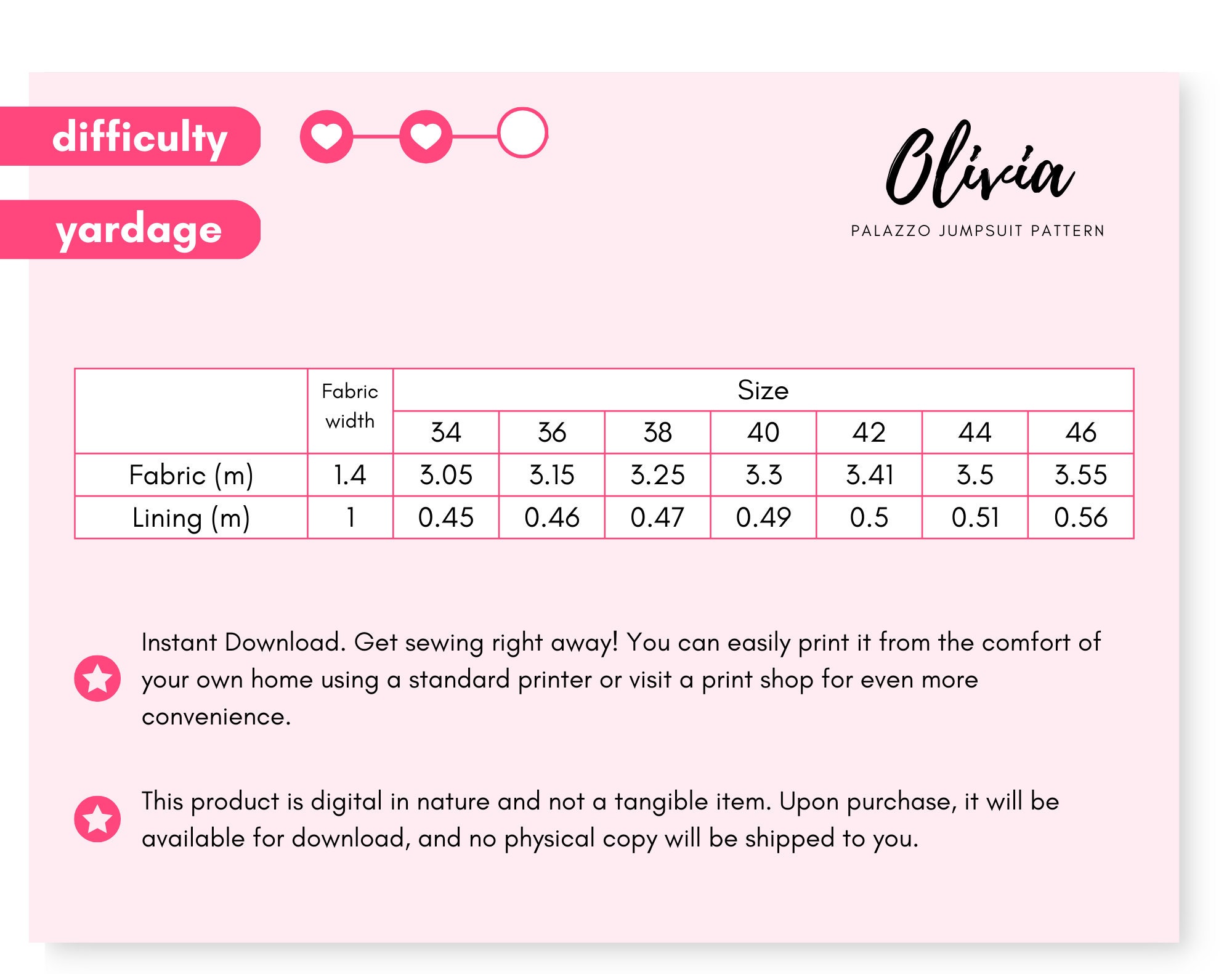 Olivia Palazzo Jumpsuit Sewing Pattern 34 36 38 40 42 44 46 Etsy